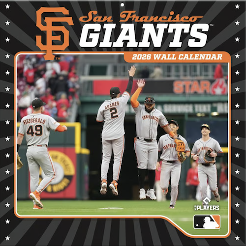 Made for passionate baseball fans, this team wall calendar includes poster-sized action shots of your favorite players from the San Francisco Giants every month! Each month also includes team and player facts. The 12x12 calendar also includes bonus pages that feature Sept.-Dec. 2025 and past World Series results. 12”w x 24”h when opened.